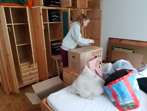 Szerda kora reggel, két szál polifómon fekve vártuk a bútorainkat Zollikonban. Meg is érkeztek hamarosan a költöztető legények, és amilyen hatékonyan bepakoltak a kamionba Bécsben, az eső ellenére is ugyanolyan gyorsan szétpakolták a különböző szobákba a gondosan becsomagolt holmijainkat Zollikonban.